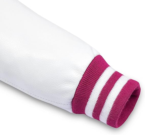 Pink & White Leather Sleeves Varsity Jacket